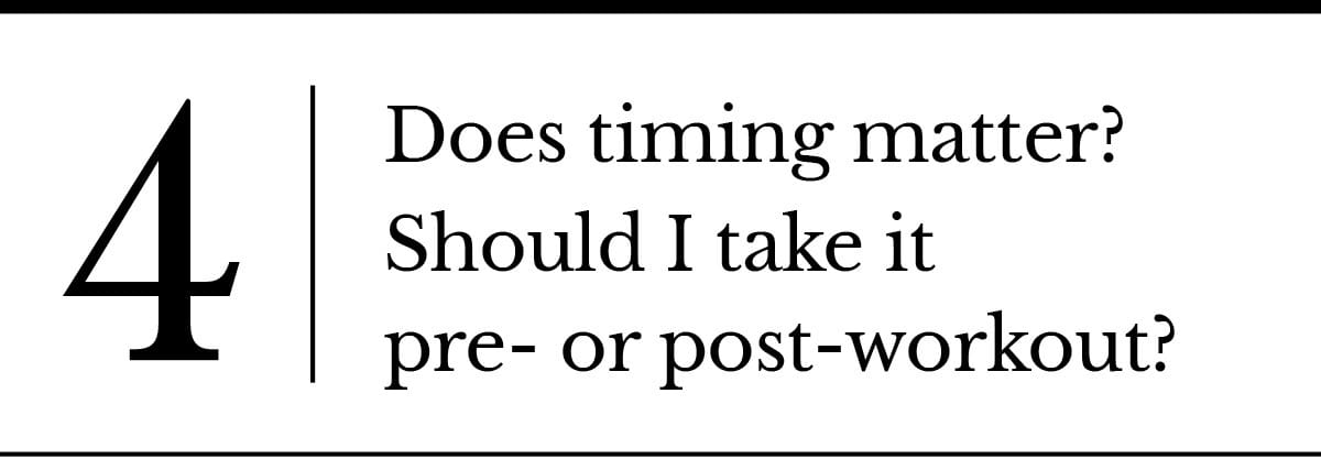 Studies comparing pre- versus post-workout dosing generally show similar results over time. The best “time” to take creatine is whatever time you’ll remember to do it daily.